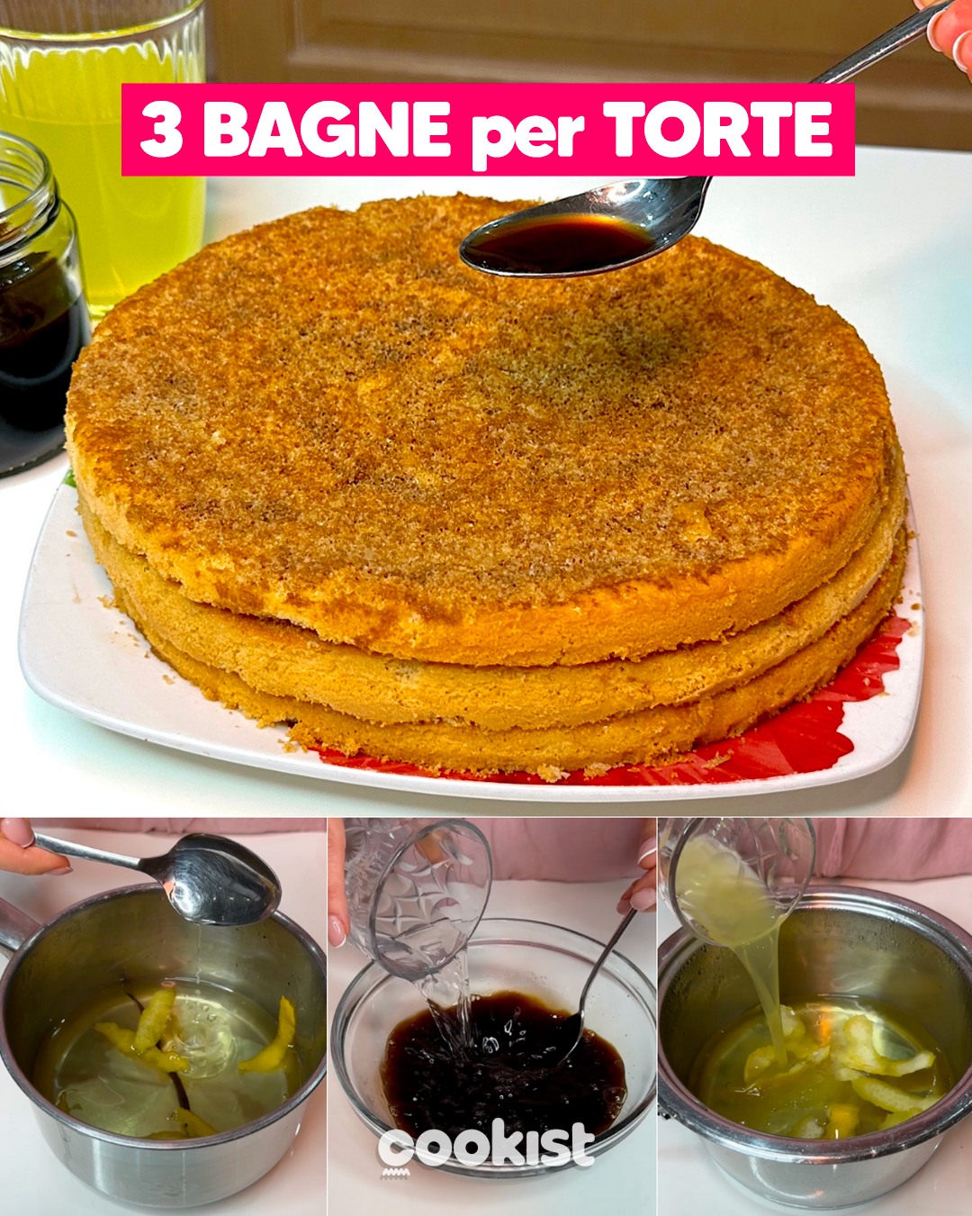 La bagna per torte è una preparazione di base fondamentale per rendere morbide le tue torte farcite. Realizzarla in casa è davvero semplice; noi ne abbiamo preparate tre varianti: una alcolica, una analcolica e una al caffè.